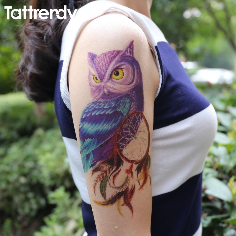 Temporary Tattoo Color Owl Dream Catcher Tattoos Stickers Big Women 39 S Waterproof On Body Arm Animal Dreamcatcher Hb649 From Beautys8 3 16 Dhgate Com